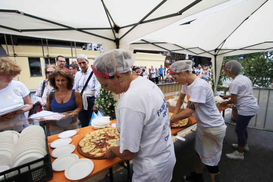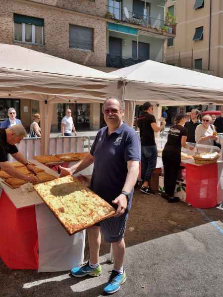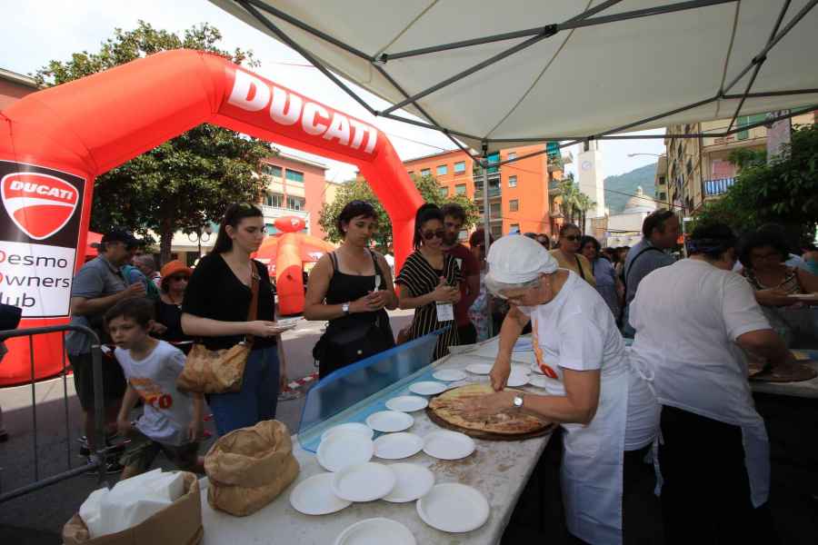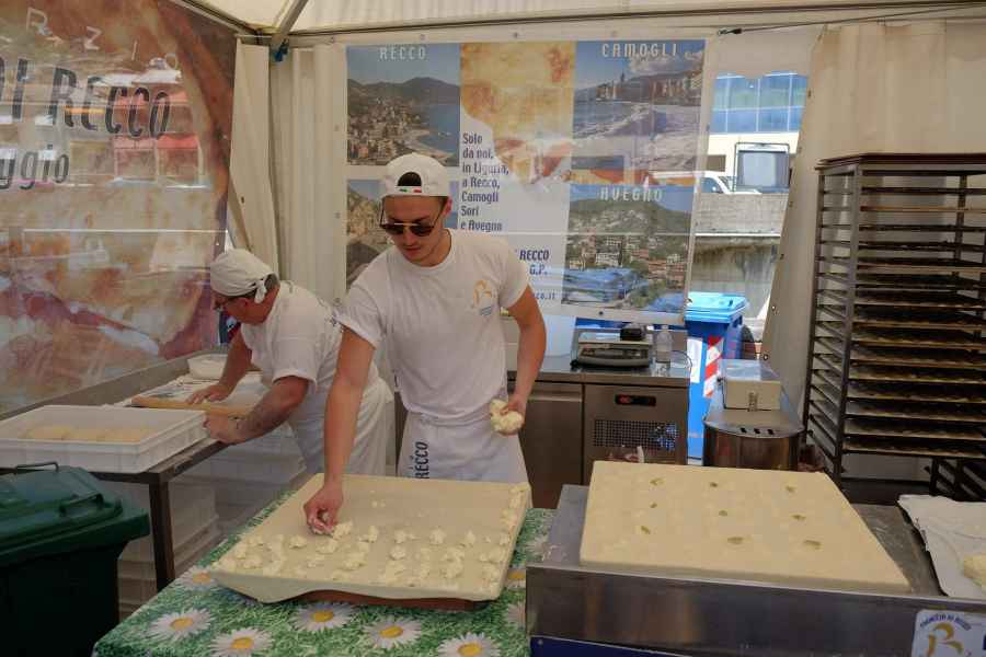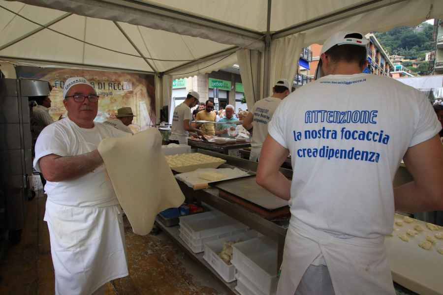 La “Festa” coinvolge tutte le associazioni cittadine e nel corso del tempo è diventata un contenitore di varie iniziative d’intrattenimento offrendo a turisti e residenti una divertente giornata di svago con mercatini di vario genere (dall’antico agli hobbisti e dal libro usato al giardinaggio con prodotti locali), spettacoli musicali e danzanti di tutti i generi (disco, liscio, latino, swing e country), area bimbi (con trenino turistico, gonfiabili, truccabimbi), spazio amanti degli scacchi e un’ospite speciale (Harley Davidson e Ducati Owners Clubs) poi le “scianke” dove persone selezionate tra il pubblico (tramite iscrizione ed estrazione) si sfidano in gare di velocità per mangiare focaccia normale e con cipolle, infine la “No Limits Challenge” dove 10 “volontari” si sfidano per “divorare” una focaccia di Recco IGP da un kg. Insomma una “Festa” da non perdere!